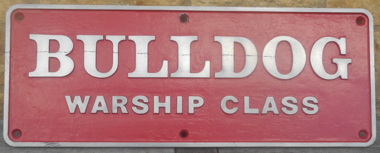 Diesel Hydraulic Locomotive Nameplate “BULLDOG” As carried by Class 41 ‘Warship’ D602. Allocated new to 83D Plymouth Laira 11/58.