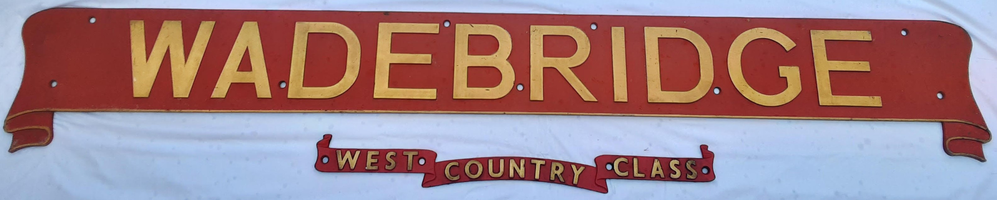 Brass Steam Locomotive Nameplate WADEBRIDGE with West Country Scroll and Crest.